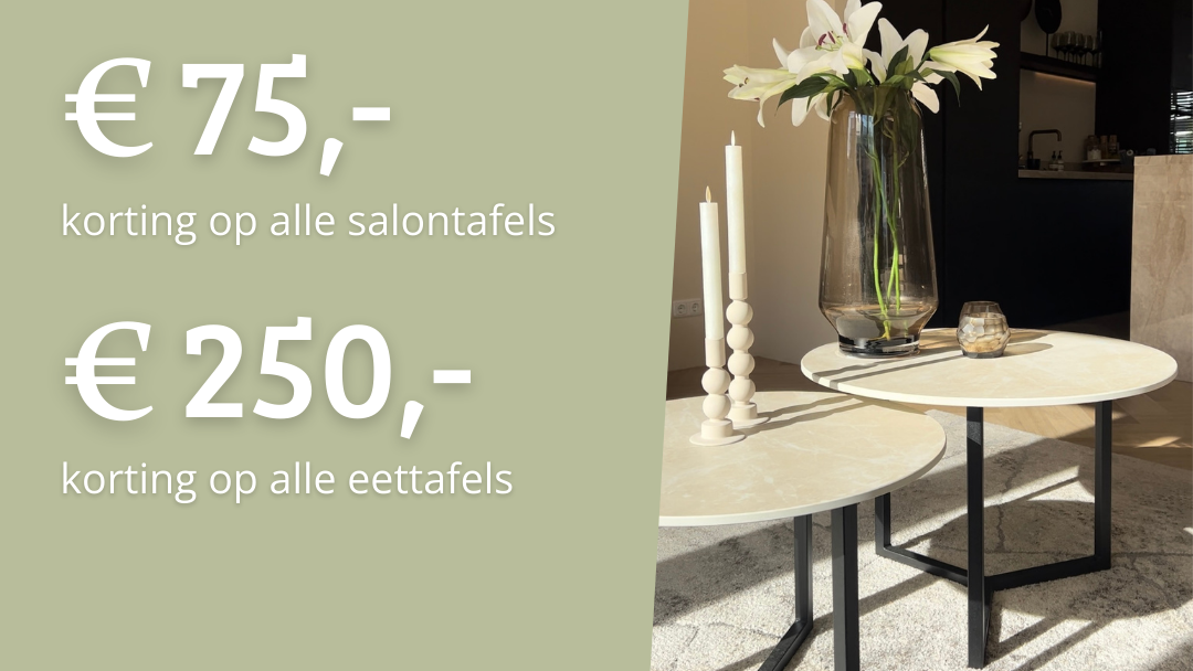 In sommige gevallen kan je de (salon)tafels direct meenemen. Wil je hier zeker van zijn dat dit kan? Neem dan vooraf even contact op.