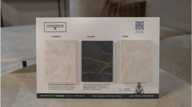 Vraag een kleurstaal aan van jouw favoriete kleur uit onze webshop. Voor een klein bedrag krijg je een goed beeld van het materiaal en of het aansluit op jouw wensen. Zo heb je 100% kans dat je nieuwe tafel helemaal matcht met je interieur!